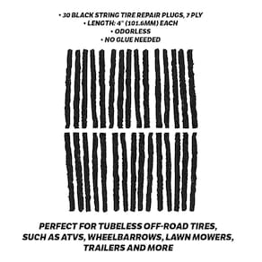 - Estes plugues de reparo de pneus padrão são perfeitos para pneus off-road sem câmara, como quadriciclos, carrinhos de mão, cortadores de grama, reboques e muito mais