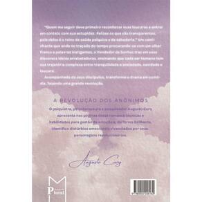 "Quem me seguir deve primeiro reconhecer suas loucuras e entrar em contato com sua estupidez. Felizes os que são transparentes, pois deles é o reino da saúde psíquica e da sabedoria.” Um caminhante que anda no traçado do tempo procurando-se com um olhar franco e palavras instigantes, O vendedor de Sonhos traz em seus discursos ideias arrebatadoras, ensinando que cada ser humano tem sua trajetória complexa entre tranquilidade e ansiedade, sanidade e loucura. Acompanhado de seus discípulos, transforma o drama em comédia, fazendo uma grande revolução. Neste livro A Revolução dos Anônimos, o psiquiatra, psicoterapeuta e pesquisador Augusto Cury apresenta técnicas e habilidades para gestão da emoção e, de forma brilhante, identi?ca distúrbios emocionais vivenciados por seus personagens revolucionários.
