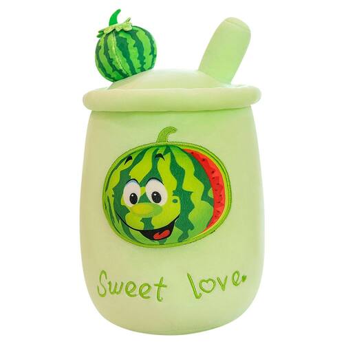 Material: pelúcia Tamanho: 35 cm Design extravagante de bebida de frutas — apresenta um formato de xícara de chá de leite verde brilhante com um rosto sorridente de desenho animado de melancia e bordado “Sweet Love”, adicionando um toque alegre a qualquer espaço. Conforto macio e recheado — Feito de tecido de pelúcia e preenchido com algodão PP macio, ele oferece uma sensação suave e aveludada, ideal para abraçar, se inclinar ou relaxar. Tamanho perfeito para meninas — Com 35 cm de altura, esta boneca de pelúcia tem o tamanho certo para ser usada como almofada de sofá, companheira de cama ou decoração em quartos infantis. Estilo de desenho animado com detalhes — Inclui detalhes divertidos, como uma mini melancia de pelúcia na tampa e um canudo de pelúcia, realçando seu apelo e exclusividade de desenho animado. Uso decorativo versátil — Este lindo brinquedo de pelúcia serve como um travesseiro macio e uma decoração adorável para quartos, dormitórios, recantos de lazer ou recantos de leitura aconchegantes.