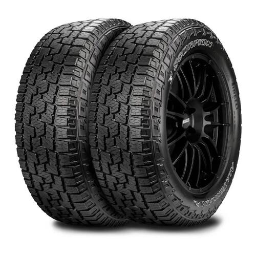 Pertencente à uma nova geração dos pneus Pirelli, o Scorpion All Terrain é um pneu que reúne diversas características que o tornam uma ótima opção para equipar a sua caminhonete ou SUV. A carcaça reforçada trabalha em conjunto com a banda de rodagem com blocos largos e bem distribuídos, o que resulta em estabilidade, aderência e ótimas respostas da direção. Os blocos possuem lamelas, que auxiliam na aderência em piso molhado, em conjunto com os profundos sulcos longitudinais que drenam água e lama com facilidade, tornando muito mais fácil encarar situações de maior exigência dos pneus. É um pneu ideal para o uso misto, pois oferece conforto e ao mesmo tempo é robusto e resistente, além de conseguir tracionar muito bem em piso off-road, graças ao formato da área de contato com o solo e aos dentes nas laterais. Além de ótimo desempenho, o Pirelli Scorpion All Terrain ainda tem visual moderno e robusto, que contribuem com a aparência do seu carro.