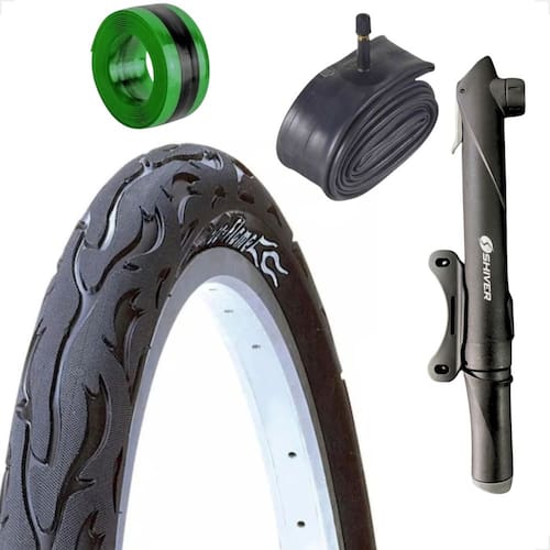 Itens inclusos: 1 unidade Pneu kenda Flame aro 26x2.125 1 unidade Camara de ar aro 26 Shiver Bico grosso 33mm 1 unidade fita antifuro tectire 1 unidade mini bomba de ar manual Shiver quadro