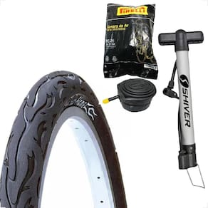 Itens inclusos: 1 unidade Pneu kenda Flame aro 26x2.125 1 unidade Camara de ar aro 26 Pirelli Bico grosso 33mm 1 unidade mini bomba de ar Shiver aluminio 30cm