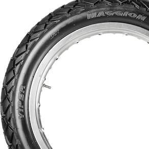 Tenha um pneu que não irá lhe deixa na mão em momento algum! O pneu Viper da Maggion é ideal para motocicletas de porte maior, como Bross, Xre 300, Crosser 15 entre outras, e se adequa muito bem em ambientes fora da cidade, como sítios e estradas de terra ou pedregulhos. Confira mais detalhes: O Viper conta com um super índice de carga, podendo suportar 250kg com facilidade e para você chegar ainda mais rápido no seu destino, conte com o índice de velocidade T, que pode te levar até 190 km/h, claro, com toda segurança e conforto que você merece.