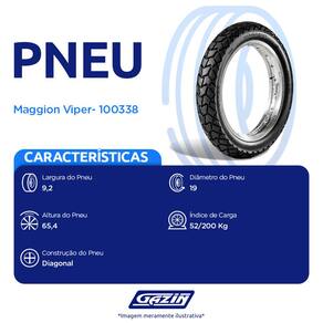 O Pneu Dianteiro Maggion Viper, possui aro 19, e se encaixa perfeitamente em motos, Crosser 150, Nxr Bross, Xre 300 e modelos similares. Você pode trabalhar, passear, viajar com máxima segurança. Os pneus diagonais são muito mais resistentes ao desgaste diário e suporte de peso. Assim, mesmo que a moto trafegue por locais ásperos e difíceis, a medida certa entre estabilidade ao motorista e conservação do pneu sob as melhores condições está aqui! O Winner suporta até 200 kg e conta com índice de velocidade 52.