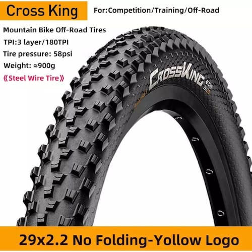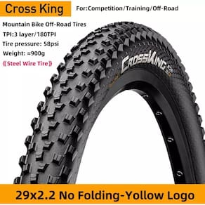 1 PNEU CONTINENTAL CROSS KING 29X2.3 BICICLETA MTBESPECIFICAÇÕESPara: competição, treinamento e off-roadTPI: 3 CAMADAS/180TPIPressão do pneu: 55psiPeso: 910grProduto importado.A empresa BLLE não aceita devoluções com as seguintes irregularidades, constantes no código do consumidor:- Rompimento dos lacres de autenticidade e garantia do produto;- Produto danificado por queda;- Produto sujo, com sinais de exposição a altas temperaturas indevidas e exposto diretamente a água, chuva e areia.- Qualquer outra irregularidade que torne o produto inapropriado para venda como novo.Produto comercializado pela BLLE de excelente qualidade, beleza e custo-benefício.OBS.:- Produto destinado exclusivamente a prática esportiva;- Manter fora do alcance de crianças;- Este produto não é um brinquedo.Enviamos seu produto em até 24 horas, exceto sábado, domingo e feriado. Ean: 7890044122959