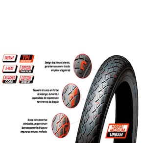 Marca: Levorin Modelo: COMFORT Construção em arame (Talão Rígido) TPI: 33 Medida: 16X1.75 44-305 mm Pressão: 30 36 PSI Peso Aproximado: 493g Quantidade: 1 Pneu