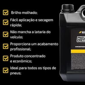 Brilho molhado intenso que dura semanas Fórmula impermeabilizante que protege pneus mesmo em contato com água Produto pronto para uso, sem necessidade de diluição