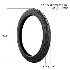 Produto: Conjunto de pneu e tubo interno 16X1,75 Serve para vários modelos de carrinhos de bebê Estes conjuntos de pneus de substituição e tubo interno de carrinho de bebê de 16 x 1,75 m servem para modelos BOB 3 Wheeler Gear Jogging Troller - Carrinho de bebê simples e duplo, compatível com Bob Gear Revolution (PRO/Flex/SE), BOB Gear Ironman e Stroller Strides pneus de carrinho de ginástica. Pneus de 16 x 1,75 também são compatíveis com o mesmo modelo de pneus de bicicleta infantil. As marcas/modelos compatíveis incluem RoyalBaby Kids Bike, Schwinn Koen Boys Bike, Schwinn Elm Girls Bike, Titan Girl's Flower Princess BMX, Dynacraft Magna, Joystar Kids Bikes e muito mais! Características: Pneu: design de padrão de banda de rodagem de bloco e tira para maior aderência Tubo interno: Recurso de autovedação para evitar planos explosivos Material do tubo interno: borracha butílica mais espessa de absorção de jarrete resistente Conteúdo da embalagem: 2 pneus 16 x 1,75, tubos internos 2 x 16 x 1,75/2,125 2 tampas de válvula. - Ampla compatibilidade: Estes conjuntos de pneus de substituição e tubo interno para carrinho de bebê de 16 x 1,75 são adequados para modelos de carrinho de corrida BOB 3 rodas - carrinho de bebê simples e duplo, compatível com Bob Gear Revolution (PRO/Flex/SE), BOB Gear Ironman e Stroller Strides Fitness Carrinho; pneus de 16 x 1,75 também compatíveis com o mesmo modelo de pneus de bicicleta - Aderência aprimorada: os pneus de carrinho de bebê 16x1,75 (47-305) são projetados com padrão de bloco e tira para aumentar sua aderência, tração e drenagem em terrenos escorregadios para melhor proteção para seus passeios; É a escolha mais segura ao andar sobre superfícies molhadas - Seguro e confiável: os tubos de pneu de carrinho de bebê precisam fornecer conforto e segurança; estes tubos de substituição para pneus de carrinho de bebê resistentes são feitos de borracha butílica de alta qualidade e podem fornecer absorção de choque ideal com suas paredes grossas de borracha butílica; seu recurso de autovedação criará imediatamente uma vedação hermética quando o pneu for perfurado para evitar rasgos explosivos - Melhor aperto de ar: estes tubos internos de substituição para carrinhos de bebê resistentes 16 x 1,75/2,125 feitos de borracha butílica, apresentam 45% mais conteúdo de borracha e paredes laterais mais grossas, oferecem excelente vedação e retenção de ar - Conteúdo da embalagem: 2 pneus de 16 x 1,75, 2 tubos internos de 16 x 1,75/2,125, 2 tampas de válvula