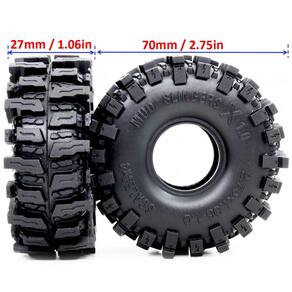 - Altura: 70 mm (2,75 pol.) / Largura: 27 mm (2,7 cm), adequado para a maioria das rodas de 1,0 beadlock. Este pneu 1.0 Mud Slingers X tem diâmetro maior e mais largo, dando a você mais altura que você precisa para enfrentar obstáculos.