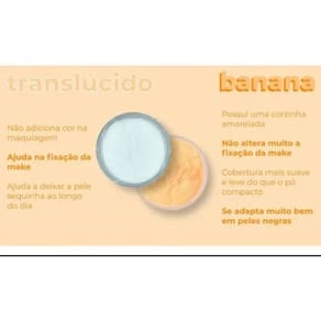 Com a tonalidade "banana", o pó ajuda a iluminar a pele, especialmente nas áreas abaixo dos olhos, nas têmporas e no centro do rosto, conferindo um efeito mais radiante e com aspecto saudável. Ele também ajuda a corrigir o tom da pele e minimizar as imperfeições, garantindo uma maquiagem duradoura e sem marcas. Além disso, o pó possui uma excelente fixação, mantendo a maquiagem no lugar por horas.