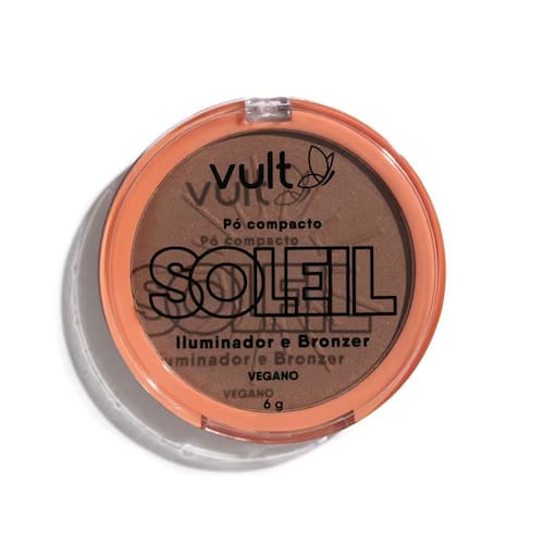 O Pó Compacto Iluminador e Bronzer Soleil – Vult é o aliado perfeito para criar um visual iluminado, bronzeado e naturalmente radiante Com textura fina e aveludada, ele desliza facilmente sobre a pele, garantindo acabamento uniforme e confortável.