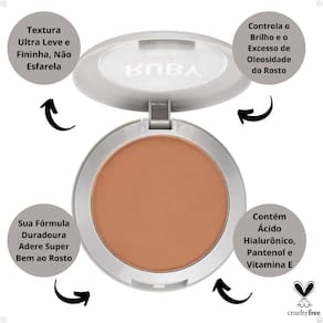 O Pó Compacto Super Fixo da Ruby Kisses é o produto ideal para proporcionar maior cobertura e durabilidade para a sua maquiagem. Sua nova fórmula contém Ácido Hialurônico, Pantenol e Vitamina E, que possuem ação antioxidante e hidratante.