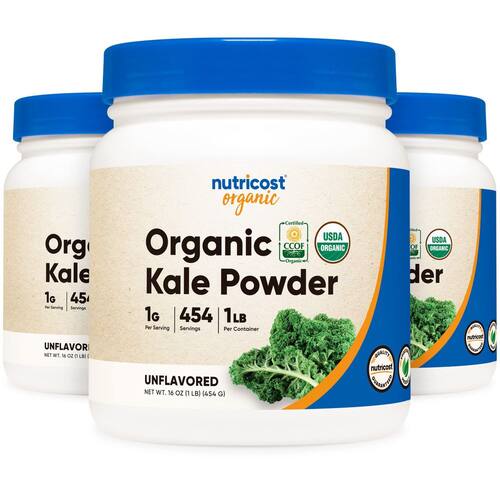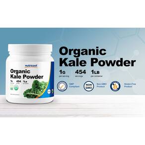 O pó de couve Nutricost é puro pó orgânico de folha de couve sem outros ingredientes adicionados para diluí-lo. O pó de couve Nutricost é isento de glúten e não transgênico e está em uma instalação que segue rigorosamente os altos padrões de GMP.