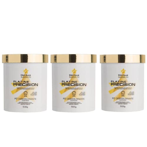 Dyusar Platine Precision é um pó descolorante de alta performance que que clareia até 9 tons, com ação ultra-rápida e sem danificar os fios. Indicado para todos os tipos de cabelos. Sua fórmula enriquecida com Pro Keratin que ajuda a repor a queratina perdida na fibra enquanto descolore os fios, preservando a estrutura do cabelo para que fiquem saudáveis, com tom uniforme e brilhante. Precauções: - Não usar nos cílios, bigodes e sobrancelhas; - Não aplicar se o couro cabeludo estiver irritado ou lesionado; - Usar luvas apropriadas e descartáveis. - Tempo de pausa é de acordo com a tonalidade desejada. Modo de usar: Efetuar o passo a passo de acordo com a descrição que contém na embalagem do produto. Emulsão oxidante, vendida separadamente.