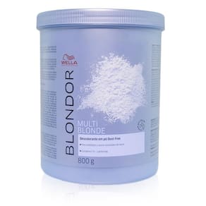 Wella Professionals Blondor Multi Blonde Powder garante até 7 níveis de clareamento. Com a tecnologia Anti-Yellow, contém eficientes moléculas que evitam o tom amarelado e geram resultados mais limpos de louro. Blondor é referência mundial em clareamento de cabelos. Os descolorantes Blondor atingem até 7 níveis de clareamento e se destacam pela sua incrível flexibilidade, por meio de aplicações de múltiplos propósitos e diferentes proporções de mistura.