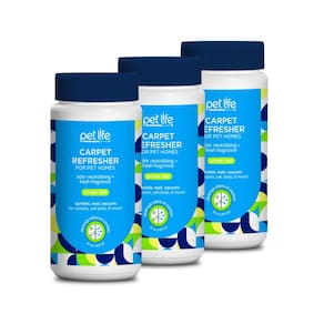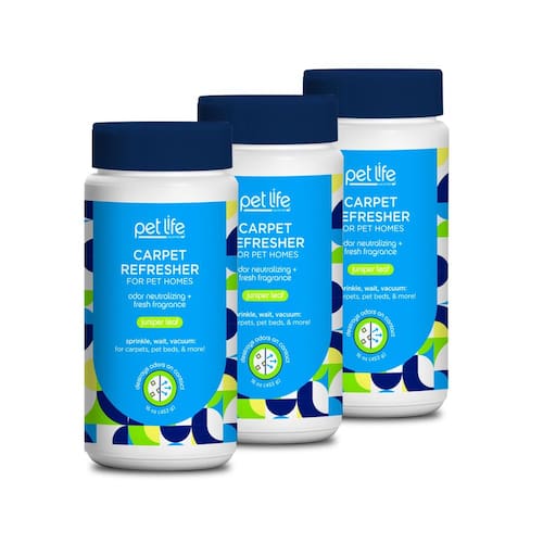 Pó refrescante de carpetes Pet Life Unlimited, desodorizante em pó seguro para animais de estimação — Eliminador de odor de carpete em pó para animais de estimação com aroma vegetal de folha de zimbro — Fabricado nos EUA — 16 onças (pacote com 3)