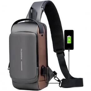 Esta é uma descrição de uma mochila de ombro masculina que possui uma trava à prova d'água antirroubo e um porta de carregamento USB. A mochila é projetada para ser usada como uma bolsa tiracolo, permitindo que o usuário carregue seus pertences de forma segura e conveniente.