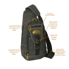 objetos com fecho engate rápido- 2 Bolsos externos com zíper- Divisória interna para colocar seu celular, carteira, etc- Alça
