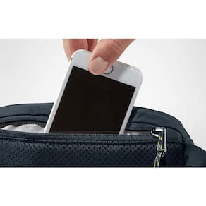 Pochete Fjallraven High Coast - Navy Perfeita para levar o essencial durante passeios ao ar livre, a Pochete High Coast é leve, compacta e feita em nylon 100% reciclado e impermeável. Para oferecer maior conforto, ela possui malha de ventilação na parte de trás. A High Coast Hip Pack é ideal para organizar seus itens da melhor forma. Ela possui bolso traseiro, bolso frontal e compartimento principal, todos com abertura de zíper. Ela possui também um bolso interno aberto e alça para chave. Além disso, pode ser guardada em seu próprio bolso, de forma a ocupar um espaço mínimo em uma bolsa ou mochila quando não está sendo Utilizado. Detalhes, Especificações do produto: Material: 100% poliamida 210D. Altura: 12 cm. Largura: 21 cm. Profundidade: 6 cm. Volume: 1,5 L. Peso: 125 g. Gênero: unissex. Família: High Coast. Instruções de limpeza e cuidados: escova macia e água morna. Informações ambientais: reciclado. Características: durável. nylon 100% reciclado, leve e impermeável. compartimento principal, bolso frontal e bolso traseiro, todos com abertura de zíper. Bolso interno aberto em mesh e alça para chaves. parte de trás com malha de ventilação para oferecer mais conforto. pode ser guardado em seu próprio bolso, ocupando um espaço mínimo na mochila ou na bolsa quando não está sendo . alça ajustável Tecnologias Reciclado Durável Fácil de cuidar e limpar Marca: Não Informado