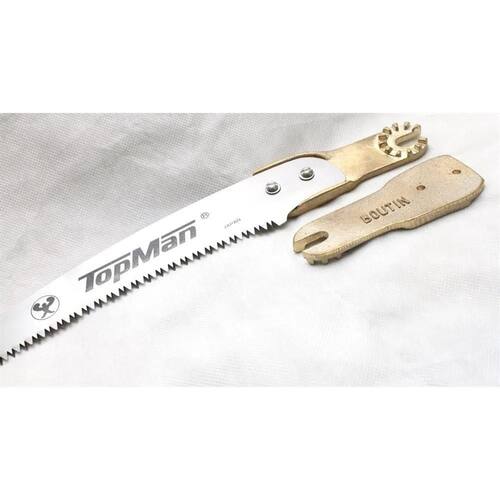 O serrote Topman com cabeçote universal é um conjunto exclusivo desenvolvido dentro dos padrões das varas de manobra utilizadas pelas companhias de energia elétrica. A lâmina é fixada com parafusos borboleta, podendo ser substituída a qualquer tempo. O cabeçote é confeccionado com dureza compatível com o terminal da vara de manobra das melhores marcas brasileiras, preservando assim os encaixes e a durabilidade da vara de manobra. A lâmina do serrote é importada do Japão, fabricada pela Topman, tem afiação prolongada e dentes com função selante e desenho com 5 pontos de contato e 3 de corte. Gancho na extremidade para limitar o corte e manusear galhos. A lamina é afiável e pode ser substituída, evitando custos com novo cabeçote que é confeccionado na mesma tempera dos terminais da vara de manobra. - Porque este serrote foi aprovado no Brasil e nos mais exigentes países do mundo para a poda urbana em rede viva - Afiação Trapezoidal: este tipo de dente além de proporcionar um corte limpo e rápido, também tem função selante onde a seiva é espalhada, o dente tem 5 pontos de contato e 3 pontos de corte, com o terceiro dente na extremidade de cada dente. - tratamento com verniz que prolonga a vida útil da lâmina. - o desenho da lâmina permite que o serrote tenha acesso a lugares mais difíceis e com a mesma capacidade de corte do Super Topman que é um serrote mais robusto. - de qualidade do corte e produtividade. Comprimento da lâmina: 350 mm Comprimento total: Peso:Origem : Japão Marca: Top Cabeçote produzido no Brasil sobre supervisão de Boutin Agricultura e Jardinagem. Marca: Não Informado