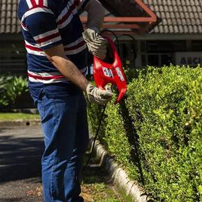 Resposta: É ideal para uso frequente em podas de cercas vivas, modelagem de pequenos arbustos e manutenção geral de jardins, sendo um complemento eficiente para seus equipamentos de jardinagem. Pergunta: Qual a potência do motor e o comprimento da lâmina deste aparador?