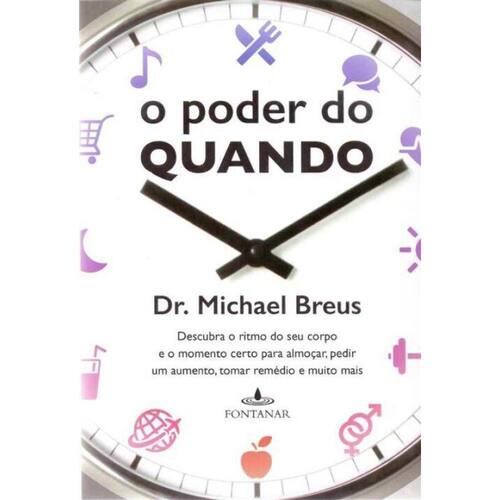 Muito já se falou sobre o que e como fazer algo para ter uma vida melhor, mas saber o momento certo para fazer cada coisa possibilita elevar o que e o como à máxima potência. Mesmo que você não mude nada sobre o que faz e como faz, realizar pequenos ajustes no quando já o torna mais saudável, feliz e produtivo. Dr. Breus descobriu que, embora o relógio biológico de cada pessoa seja diferente, a maioria de nós pertence a um dos seguintes cronotipos: urso, lobo, golfinho ou leão. Depois que fizer o teste desenvolvido pelo autor e descobrir o seu cronotipo, aprenderá o melhor momento para fazer tudo desde planejar algo importante, praticar exercícios e memorizar informações novas, até discutir com seu parceiro. Recheado de fatos fascinantes, recomendações e dicas fáceis de seguir, O poder do quando é o guia definitivo para ajudá-lo a atingir seus objetivos, conduzindo-o rapidamente a uma vida de sucesso.