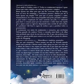 Apaixonar-se pela primeira vez… Você ainda se lembra como é? Todos os sentimentos intensos e grandiosos que estão contidos em coisas tão pequenas e simples? Basta apenas um olhar para que um frio crescente surja na barriga, bem na boca do estômago, e borboletas passem a flutuar por ali. E basta apenas um simples “Oi” para que as pernas congelem e, então, desmanchem-se. E se estiver um pouquinho mais perto, próximo o suficiente para sentir a respiração do outro acariciar sua pele, é o suficiente para fazer o coração parar por um momento e então bater tão rápido que é quase como se estivesse disputando uma corrida de mil cavalos. E o perfume? Ah! Esse é capaz de roubar a paz e paralisar todos os pensamentos. É exatamente esse misto de sentimentos e sensações, que arrebatam Helena quando ela conhece Victor: o estranho mais lindo e de olhar mais profundo que ela já viu em toda sua vida. E que, não podemos nos esquecer, apenas pediu para sentar-se ao seu lado na praça de alimentação do Shopping. Apaixonar-se pela primeira vez… Maravilhoso e também, assustador. Mas por que assustador? Talvez porque sua mãe foi deixada quando ainda estava grávida e Helena nunca soube quem seu pai é ou como ele é, afinal, ela nunca o viu, sequer por uma foto. E por mais que sua mãe tenha refeito a vida e encontrado o amor nos braços de Clay – seu padrasto, que a criava e a amava desde que ela tinha 4 anos de idade –, ainda assim, em algum lugar escondido em sua alma, Helena cultiva a dor dessa ausência, dessa falta… De muito antes de nascer ter sido abandonada. Mas isso, é claro, até deixar Victor sentar-se ao seu lado na praça de alimentação do Shopping, até ser embriagada pelo seu perfume e entregar-se a esse homem de olhos tão negros e profundos. E, nessa jornada, descobrir quais caminhos transformam uma paixão doce e inocente em um amor intenso e avassalador.
