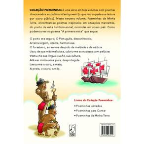 COLEÇÃO POEMINHAS é uma série em três volumes com poemas Francisco de Lavor direcionados ao público infantojuvenil (o que não impede sua leitura por outro público). Neste terceiro volume, Poeminhas da Minha Terra, encontram-se poemas inspirados em situações marcantes, do ponto de vista histórico-social, ocorridas em nosso país. Como podemos ver no poema “A primeira vista” que segue: O porto era seguro; O Português, desconhecido; A terra virgem, intacta, harmoniosa. O forasteiro, ao ver-me despido de maldade e de astúcia Usou de sua mão maliciosa, cobriu-me as nudezas com pelúcias Vestiu-me sua língua, sua fé, sua cultura, Até ver minha alma pura, desprotegida. Levou-me o ouro, a mata, A prata, o couro, a vida... Marca: ALBATROZINHO EDITORA