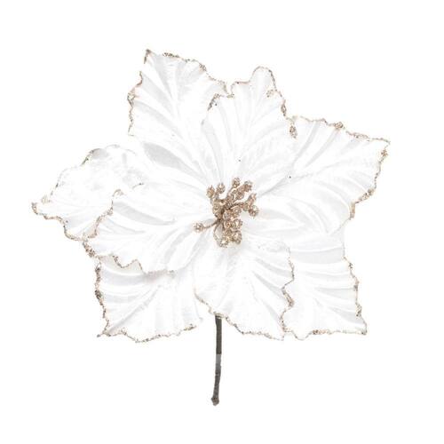Poinsetia branca - Cor Predominante: BRANCO - Materia Prima: 75% Poliéster, 20% Metal e 5% Plástico - Instruções de Limpeza: Limpar apenas com pano macio e seco. - Destaques: Porque nenhuma decoração de Natal tradicional é completa sem poinsétias! Para dar um toque final ou até mesmo em grande quantidade para conseguir um efeito UAU, estas lindas flores são essenciais!