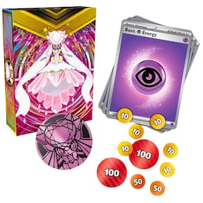 1 baralho com 60 cartas 1 conjunto de contadores de dano 1 moeda metálica grande 1 caixa para baralho 1 carta de código para jogar online Ean: 7896192358646