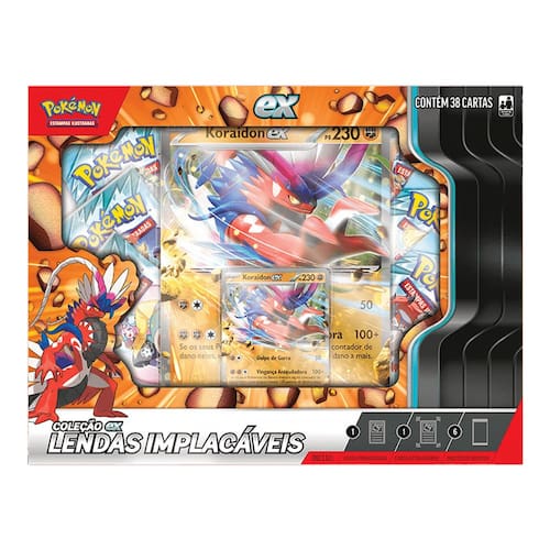Pokémon Box Coleção EX Lendas Implacáveis Koraidon 38 Cartas 100-10392 35239 - Copag - Dorémi Brinquedos