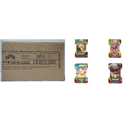 CAIXA COM 24 Blister Unitário Pokémon ME03 Equilíbrio Perfeito O despertar de poderes secretos! A cidade vibra na mesma frequência que os Pokémon e as pessoas que a chamam de lar! E garantindo esse equilíbrio, está Mega Zygarde ex, o Pokémon Lendário que representa a força da união! Com as ameaças sob controle, um novo tempo de paz e ordem se aproxima para os moradores da cidade, como Mega Clefable ex, Mega Starmie ex e Meowth ex, na nova expansão