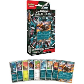 1 Baralho com 60 cartas prontos para jogar! 3 Cartas de referência 1 Guia de regras. 1 Tabuleiro para 1 jogador 1 Conjunto de contadores de dano. 1 Moeda grande. 1 Caixa de baralho. 1 Guia de estratégias. 1 Carta codificada para jogar este baralho online.