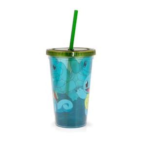 - Design divertido: este copo de plástico azul transparente apresenta várias imagens divertidas do Squirtle, o iniciador Kanto tipo água!