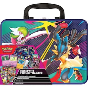 Aumente sua coleção de Pokémon e leve seus cards favoritos para o seu próximo evento Pokémon com o Baú de Colecionador do Pokémon Estampas Ilustradas. Este estojo de metal resistente contém mais de uma dúzia de itens especiais de Pokémon, incluindo alguns exclusivos. Os cards holográficos de Ralts, Kirlia e Riolu brilharão intensamente no mini portfólio incluso — e se você estiver montando um deck com Mega Gardevoir EX ou Mega Lucario EX, pode incluir esses cards para dar um toque especial!