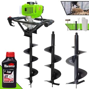 Perfurador De Solo Menegotti MPS52 Á Gasolina 2T 52CC 1,8HP Com Brocas 80x20cm, 80x25cm, 80x30cm + Óleo Toyama FG50 500ml 2T