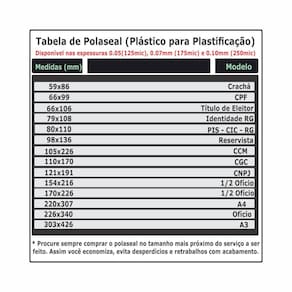 Confira os tamanhos de Polaseal disponíveis na tabela abaixo: