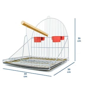 O poleiro pequeno fixo é ideal para seus pássaros mansos repousarem. Produzido em arame de alta qualidade com tratamento de zincagem que reduz a incidência de ferrugem. Ficha técnica: saiba mais sobre o produto Medidas 35cm de altura total 30cm de largura 30cm de comprimento Material Produzida em arame de alto padrão com tratamento de zincagem que reduz a incidência de ferrugem e reforça a qualidade do acabamento. Itens inclusos no pacote de arames, 02 comedouros, 01 poleiro e uma bandeja de metal para recolher as fezes.