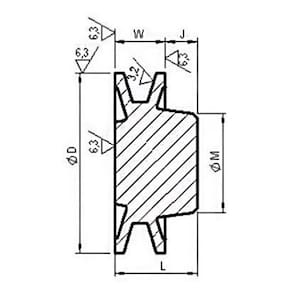 - Especificações Técnicas: Material: Alumínio Aplicações: Sistemas de transmissão, máquinas industriais, equipamentos agrícolas Tipo de Canal: 2 Canais Tipo A D: 80mm M: 43mm L**: 45mm W: 34,7mm Furo Máx.: 23mm J**: 10,3mm Peso: 360 g