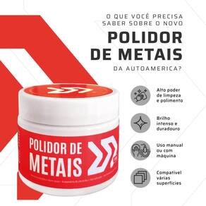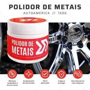 Polidor de Metais 150g Autoamerica O brilho que você sempre quis agora tem nome: Polidor de Metais Autoamerica. Especialmente formulado para proporcionar um acabamento perfeito, ele remove com facilidade oxidações, micro-riscos, manchas e outras imperfeições que comprometem o visual das superfícies metálicas. Sua consistência cremosa facilita a aplicação e garante uma limpeza profunda com acabamento refinado, mesmo nas áreas mais delicadas. Benefícios do Produto: Restauração completa: Remove oxidações, micro-riscos e marcas de uso. Alto rendimento: Embalagem de 150g ideal para várias aplicações. Proteção prolongada: Forma uma camada protetora contra novas agressões. Fácil de aplicar: Textura cremosa e homogênea, com ótimo espalhamento. Seja para revitalizar detalhes cromados do seu carro, dar nova vida a metais envelhecidos ou proteger superfícies expostas, o Polidor de Metais Autoamerica entrega resultados visíveis desde a primeira aplicação. Dê brilho, destaque e proteção aos metais com quem entende do assunto A NR Estética oferece uma de 7 dias em seus produtos Ean: 7908249329162