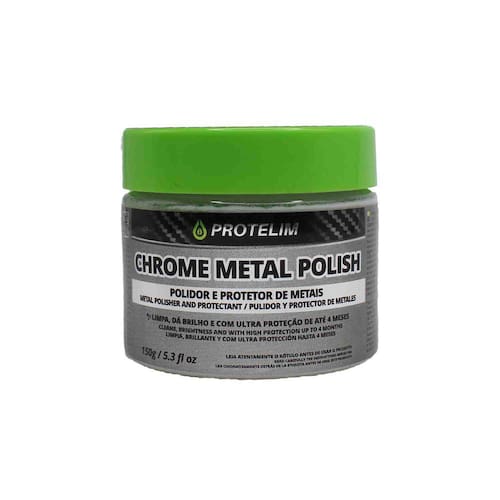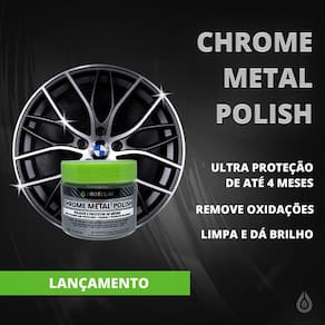 CHROME METAL POLISH é um polidor e protetor de metais de alta performance, desenvolvido para remover contaminações, oxidações e manchas nos metais. Usado em alumínio, cromo, cobre, latão, aço inoxidável, entre outros. Sua fórmula possui abrasivos com alto grau de dureza, agentes anticorrosivos e SiO2, que protegem contra oxidação e opacidade nos metais.