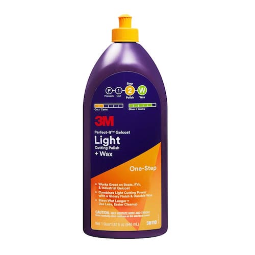 Polimento de corte leve 3M Perfect-It Gelcoat + Wax, 36110, 1 litro, processo em uma única etapa, remove arranhões e redemoinhos, removedor de oxidação leve para barcos e trailers - USE O QUE OS PROFISSIONAIS USAM — Polir e encerar o gelcoat em uma única etapa, para que você possa voltar à água ou à estrada - SEGURO PARA GELCOATS E FIBRA DE VIDRO - O esmalte e a cera marinhos são formulados cientificamente para remover pequenos arranhões, marcas de redemoinho e defeitos de barcos e trailers — DEIXA UM ACABAMENTO DE NÍVEL PROFISSIONAL — A cera deixa alto brilho e ajuda a proteger contra vento, água e intempéries — FÁCIL DE USAR — Aplique usando um polidor rotativo com uma almofada de polimento de lã 3M amarela; também pode ser aplicado manualmente em pequenas áreas - PARTE DE UMA FAMÍLIA DE PRODUTOS PARA CUIDADOS COM BARCOS - Use para oxidação leve em qualquer superfície de revestimento de gel ou use após o composto de corte pesado 3M Perfect-It para oxidação mais pesada em barcos de cores mais escuras - Somente para uso industrial/ocupacional. Não é para venda ou uso ao consumidor. .