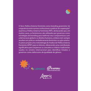 O livro Política Externa Feminista como branding governista: há congruência entre normas institucionais e práticas de cooperação? examina a Política Externa Feminista (PEF), destacando que, em muitos casos, os feminismos são utilizados por governos como estratégias de branding para reafirmar seus compromissos com a democracia global e os direitos humanos, embora nem sempre resultem em práticas verdadeiramente feministas na ação exterior.