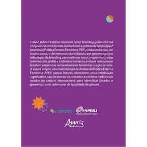 O livro Política Externa Feminista como branding governista: há congruência entre normas institucionais e práticas de cooperação? examina a Política Externa Feminista (PEF), destacando que, em muitos casos, os feminismos são utilizados por governos como estratégias de branding para reafirmar seus compromissos com a democracia global e os direitos humanos, embora nem sempre resultem em práticas verdadeiramente feministas na ação exterior. A autora propõe uma metodologia de Análise de Política Externa Feminista (APEF) para os leitores, oferecendo uma contribuição significativa para (re)pensar os conceitos e critérios tradicionais utilizados no cenário internacional para identificar Estados e governos como defensores da igualdade de gênero.