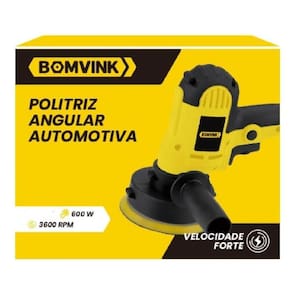 Produto: Politriz angular 5" 600W velocidade variável - BOM-9575 Marca: Bomvink Voltagem: 110VDescrição: A Politriz angular 5" 600W velocidade variável BOM-9575 da Bomvink é um equipamento que eleva o padrão de beleza e cuidado de superfícies, garantindo resultados impecáveis e duradouros. Com motor de alta potência de 600W, a BOM-9575 não apenas oferece força, mas também operação eficiente e menos desgaste mecânico. Ajuste a velocidade facilmente para atender às diversas necessidades de seu projeto, desde o polimento suave até o mais intenso. Características: • Velocidade Variável: Ajuste a velocidade de acordo com o material a ser polido, garantindo versatilidade e controle total;• Design Ergonômico: Equipada com uma alça auxiliar, oferece maior estabilidade e conforto, reduzindo a fadiga durante o uso prolongado;• Sistema de Dissipação de Calor: Mantenha a ferramenta em temperatura ideal, prolongando a vida útil do motor e garantindo segurança;• Inclusão de Acessórios: Venha preparado com diversos acessórios, adequados para diferentes cenários de polimento.Especificações: Potência: 600WDiâmetro do disco: 5" - 123 mmRotações por minuto: 3600 RPM.Itens Inclusos: 1 Escova de lã1 Escova de esponja3 Lixas1 Empunhadura. Marca: Não Informado