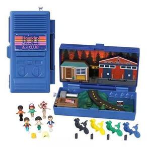 Polly traz à vida a amada série de televisão Stranger Things em um formato micro incrível! O exterior do walkie-talkie se abre para revelar os icônicos locais de Hawkins, Indiana, e o misterioso Upside Down. Os fãs podem recriar as emocionantes aventuras da série com seis micro bonecos dos personagens de Stranger Things. Dez acessórios e recursos divertidos oferecem detalhes em forma de "Easter eggs" e momentos de brincadeira que capturam cenas populares: a sala de estar dos Byers, o passeio de bicicleta pela floresta, o tanque de privação sensorial, e os encontros assustadores com o Demogorgon. Este compacto colecionável é perfeito para fãs de Stranger Things e Polly . As cores e decorações podem variar.