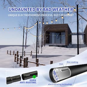 - Materiais premium à prova de ferrugem: Feito de metal de alta qualidade com um revestimento eletroforético, nossos postes de luz de corda oferecem durabilidade excepcional. Este tratamento de superfície avançado evita ferrugem, corrosão e desbotamento, não importa o clima: sol, chuva, vento ou neve