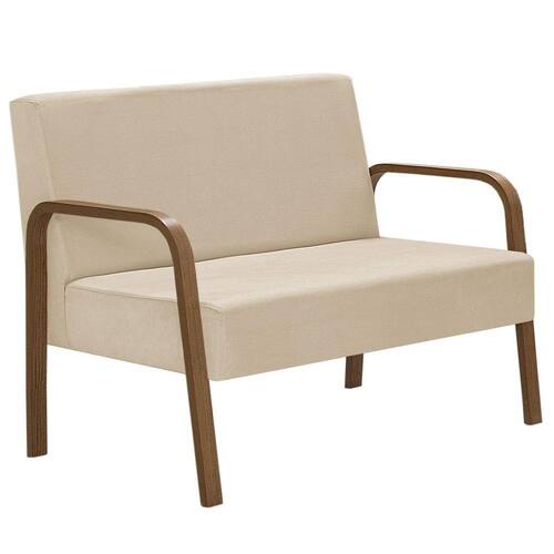 Poltrona 2 Lugares Jade Braço Madeira DSalla Suede - Bege