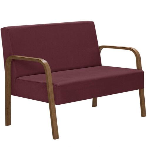 Poltrona 2 Lugares Jade Braço Madeira DSalla Suede - Bordô