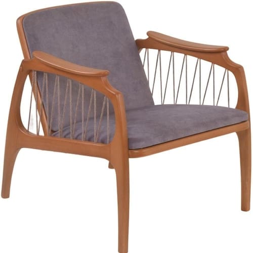 A Poltrona Ágata com certeza será a sua melhor escolha! Ela é produzida 100% em madeira maciça, assento e encosto estofados, e possui um nobre acabamento, ideal para modernizar as composições de seu ambiente. Os pés da poltrona estão ligados aos braços, trazendo inovação, modernidade e um charme todo especial com o detalhe em corda naval nas laterais, enquanto o assento estofado e o encosto em tela sextavada trazem mais conforto e aconchego para você, sua família e amigos.